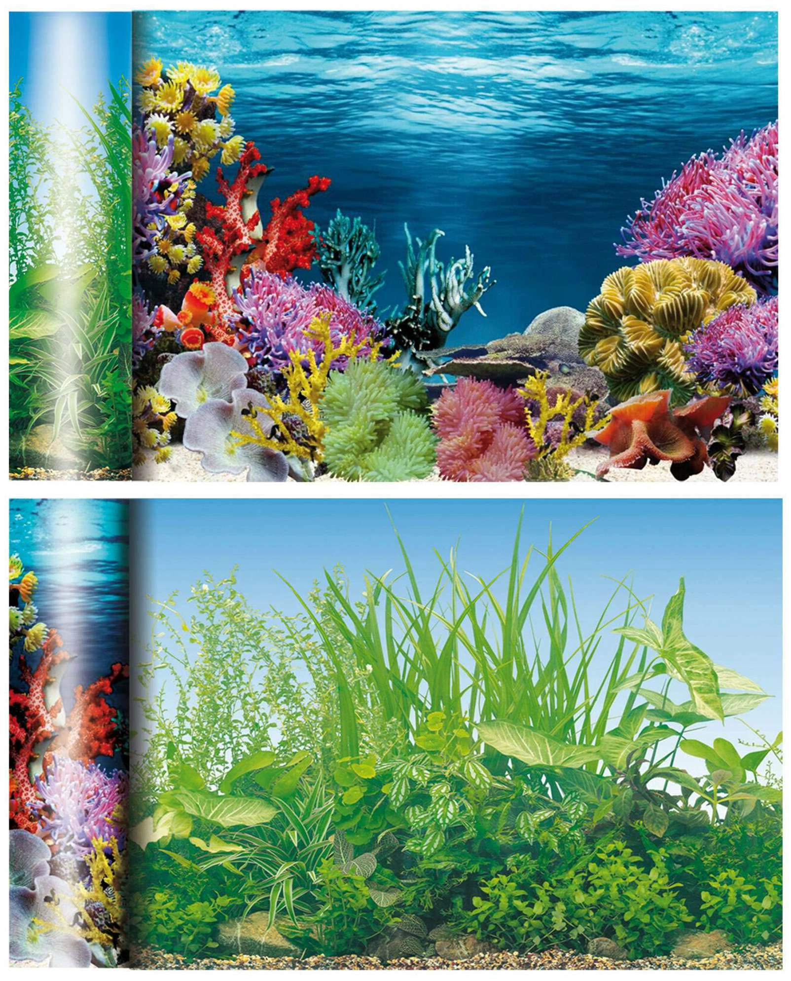Arrière-plans décoratifs thématiques doubles qui fournissent un effet de profondeur pour les aquariums et les terrariums.